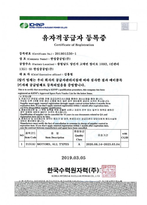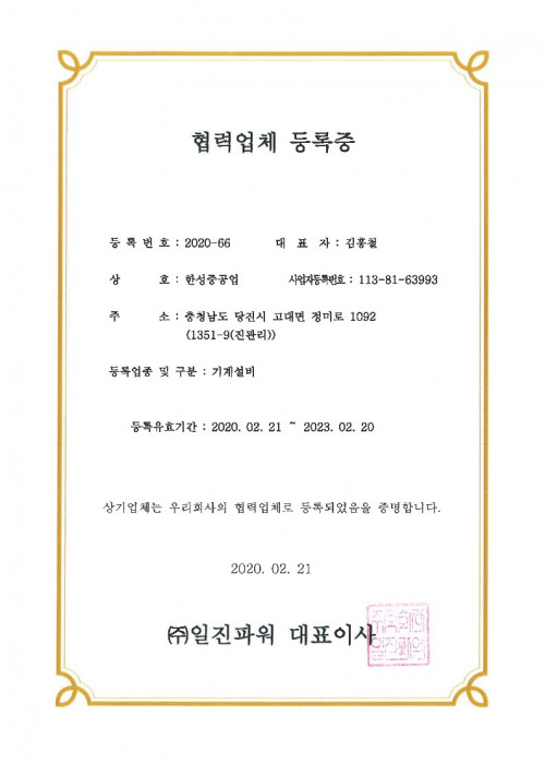 (주)일진파워 협력업체 등록증