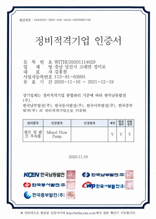 업체 등록 인증서
