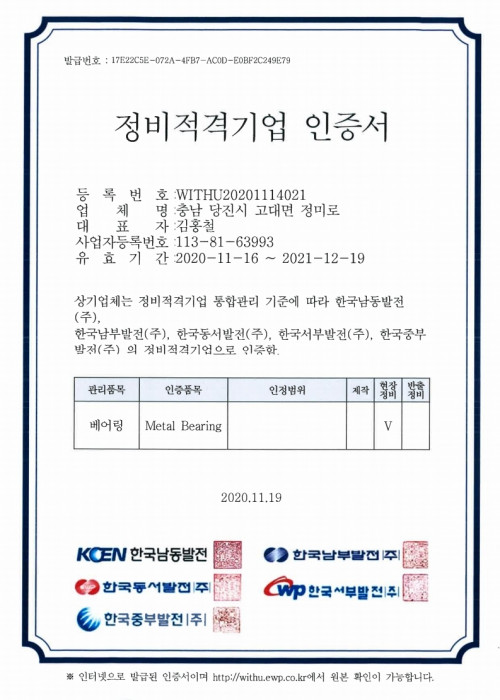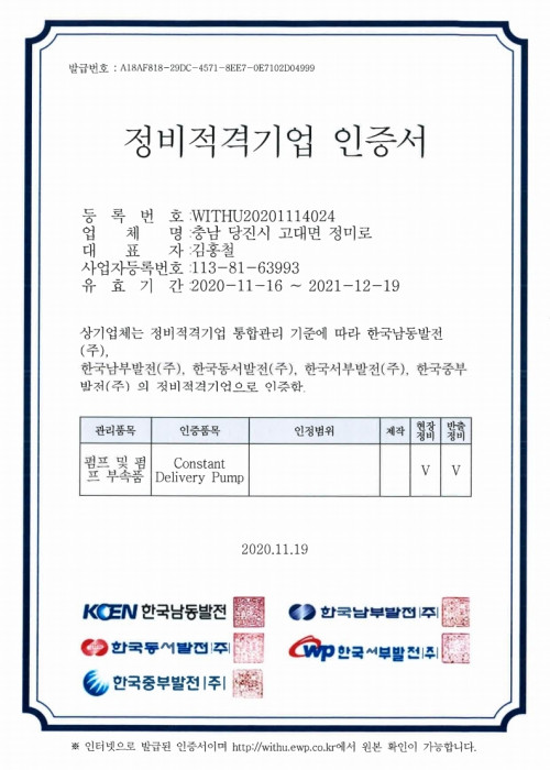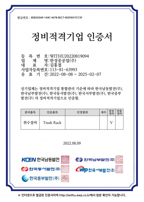 HOME > 기술현황 > 인증현황 > 업체 등록 인증서