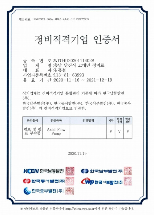 HOME > 기술현황 > 인증현황 > 업체 등록 인증서