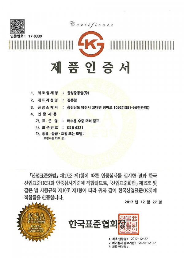 제품인증서