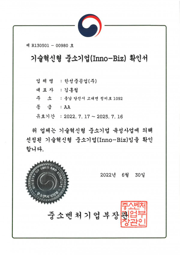 기술혁신형 중소기업 확인서