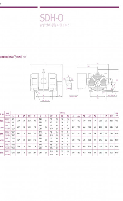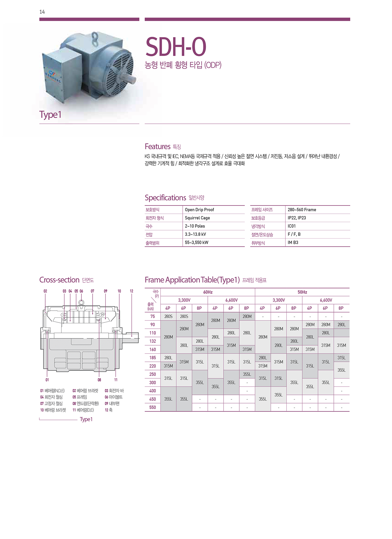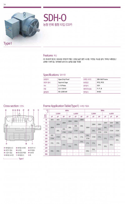 KS 국내규격 및 IEC, NEMA등 국제규격 적용 / 신뢰성 높은 절연 시스템 / 저진동, 저소음 설계 / 뛰어난 내환경성 / 강력한 기계적 힘 / 최적화한 냉각구조 설계로 효율 극대화